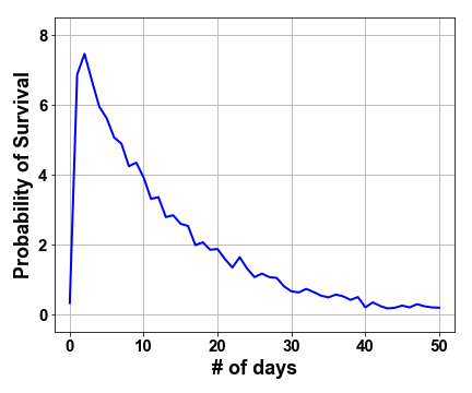 print('Average Survival Time = ' + str(round(np.average(times),1)) + \