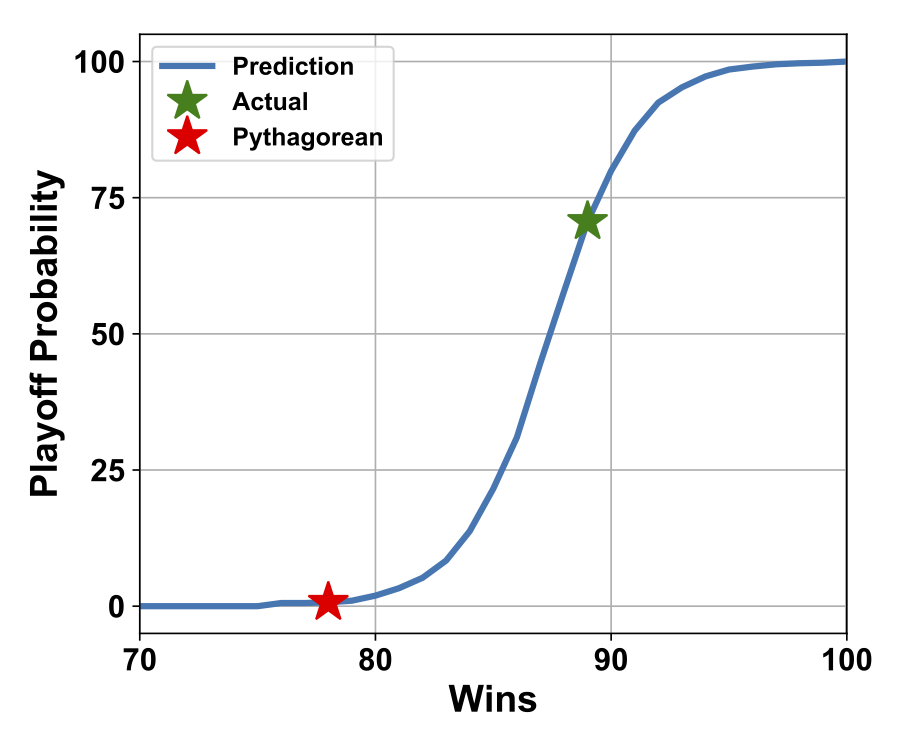 But before we dive too far into self-pity, Mariners fans should probably be thankful that they even got this far considering the team’s performance in terms of runs. The easiest stat to point to is run differential where, despite having won more games than lost, the M’s allowed 34 more runs than they scored. But the far more interesting stat is the Pythagorean Win Expectancy (PWE). According to this metric, they should be sitting at a .478 win percentage, a season-long difference of 12 games compared to the Mariners’ final .549 pace. Obviously, credit has to be given to the Herculean effort of Edwin Diaz and his 57 saves, but a little bit of luck had to have been involved, considering that only nine other teams since the deadball era have ever outperformed their PWE by more. (One notable example of these outperformers is the 1981 Reds, who actually got shafted much harder than this year’s M’s due to a strike-shortened season. Despite having the best overall record in the NL, a midseason strike reset the standings, leaving Ken Griffey Sr. out in the cold.)